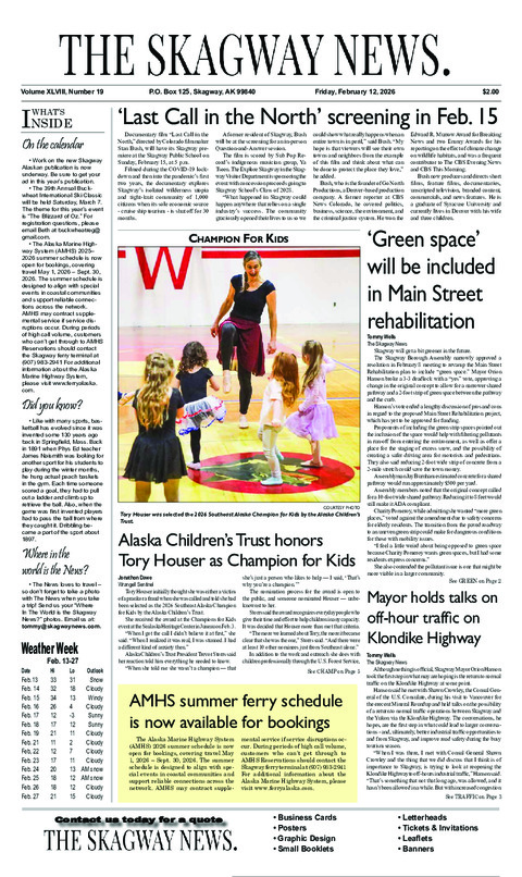The historic gold‐rush town of Skagway welcomed the holiday season in style on Tuesday as the...